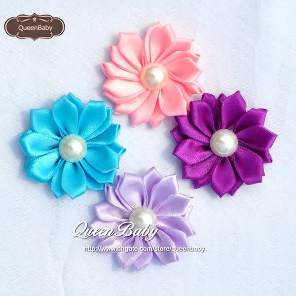 Trail Order Mini Satin Ribbon Flower With Pearl Diy Flowers Girl S Hair Accessories Queenbaby Short Hair Accessories Hair Accessories For Little Girl