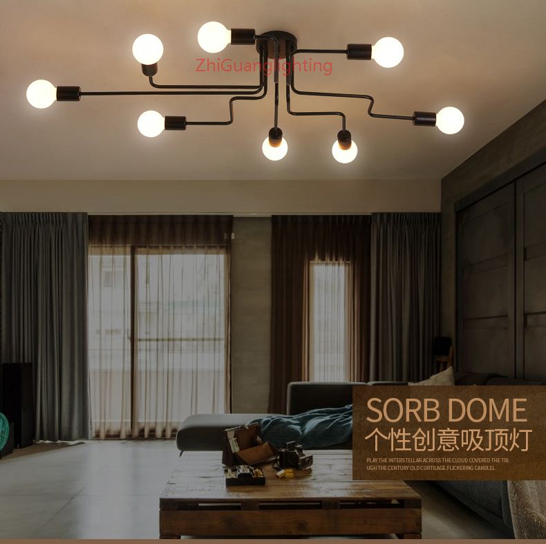 2019 Wrought Iron 4 Heads 6 Heads 8 Heads Diy Multiple Rod Ceiling Dome Lamp Creative Personality Design Retro Nostalgia Cafe Bar Ceiling Light From