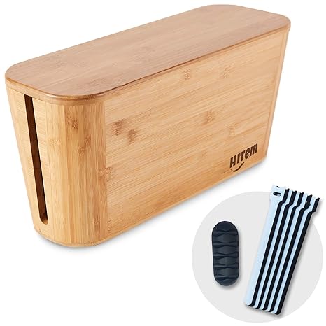 Hitem Bamboo Cable Management Organizer Box X Large Size Keeps Pets And Children Safe Stylish Diy Cord Hides Large Cable Storage Box Protector 15 9
